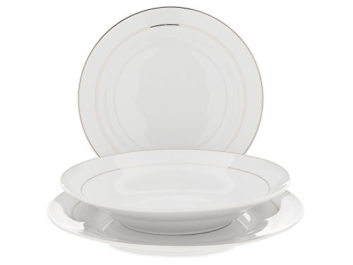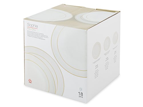 HOME Servizio Tavola Piatti 18 Pezzi Ala Porcellana Sophia 2 Fili Oro, Bianco