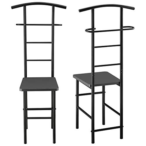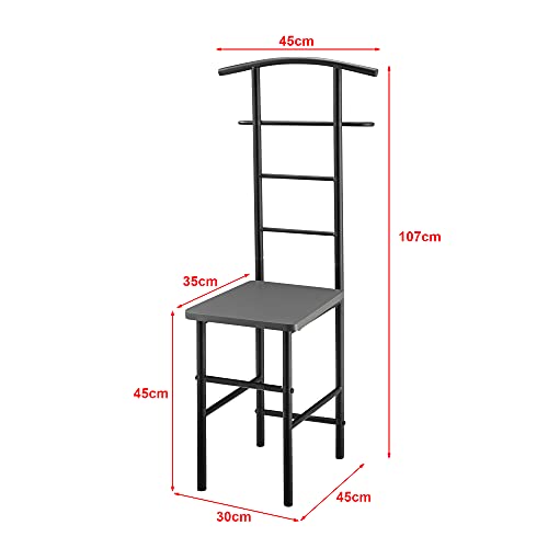 En.casa - Servomuto con Seduta Omino Appendiabiti in Metallo Indossatore da Camera Porta Abiti Posa Oggetti - Grigio Scuro