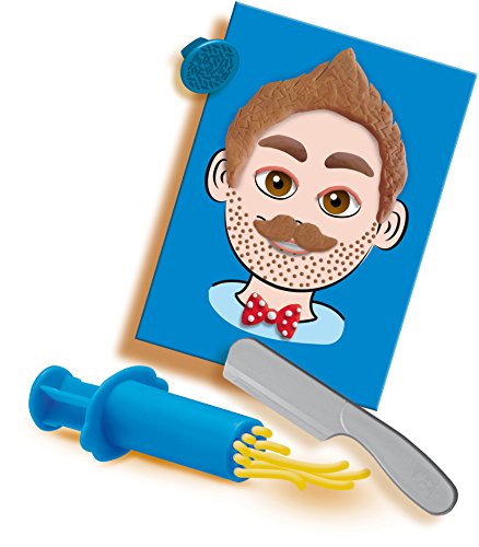 La confezione contiene pasta in 4 colori, stampi, coltellino in plastica, pressa per i capelli