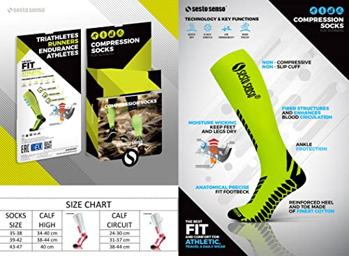 Sesto senso 3 paia Alte Calze a Compressione Sportive Donna Uomo per Sport 35-38 3 Pack Giallo neon