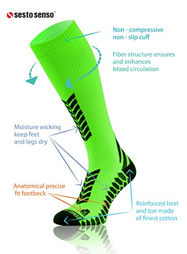 Sesto senso 3 paia Alte Calze a Compressione Sportive Donna Uomo per Sport 35-38 3 Pack Verde neon