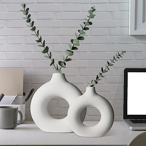 Enkinil-Ceramica-Vaso, Set-Di-2, Vaso Decorativo-Da-Interno, Arredamento Casa Moderno Vaso Per Fiori, Bianchi Vaso Boho Style, Per Camino, Cucina Da Soggiorno, Scrivania Per Ufficio, Idee Regalo