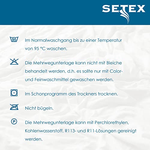 Contenuto della confezione: 1 SETEX copri materasso, dimensioni: 75 x 90 cm, materiale superiore e inferiore: 100% poliestere, strato intermedio: 100% poliuretano, assorbimento: 100% PES in tessuto non tessuto, colore: Bianco
