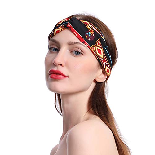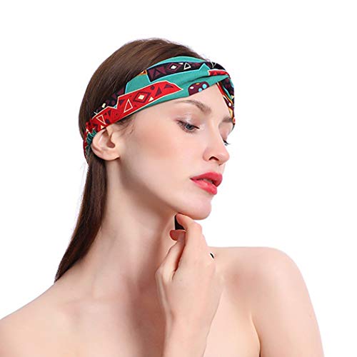 Sethain Vintage Fascia per capelli Criss Cross a fascia Elastico Elastico Bandana Yoga Cerchietto per capelli Stampa Copricapo Per donne e ragazze (3 pacco)