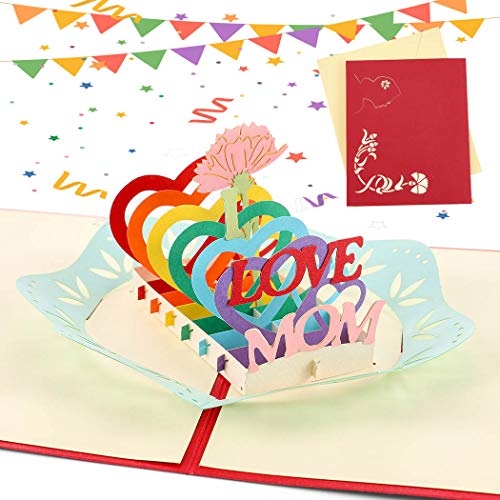 Sethexy 3D Carte per la festa della mamma Apparire Biglietti di ringraziamento Pensando a te carte Schede e buste vuote Carta di anniversario Carte di compleanno di mamma per donne (A)