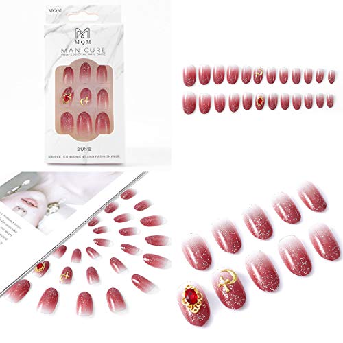 Sethexy Lucido Ovale Medio Unghie finte Rosa luccichio Pendenza Rubino Studs Copertura completa Acrilico 24 pezzi Unghie finte Suggerimenti per donne e ragazze