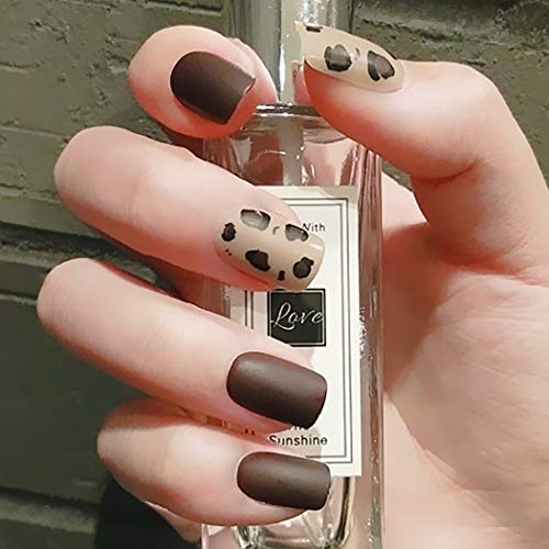 Sethexy Opaco Unghie finte Corto Piazza Leopardato Marrone Copertura completa Acrilico Premi su Suggerimenti per unghie finte per Donne e Ragazze