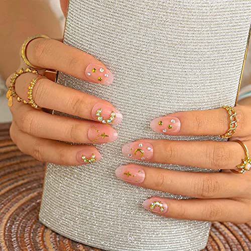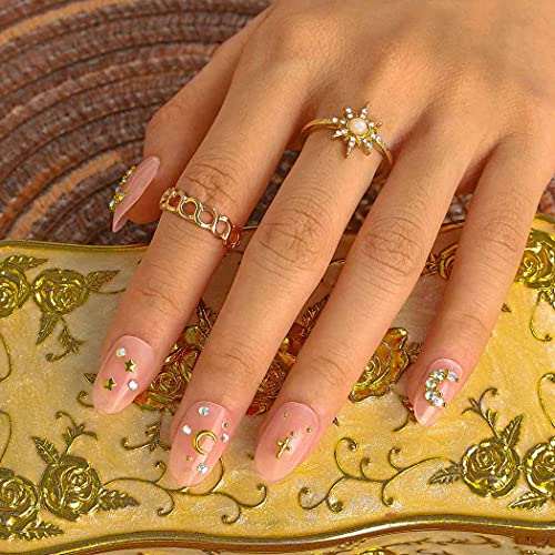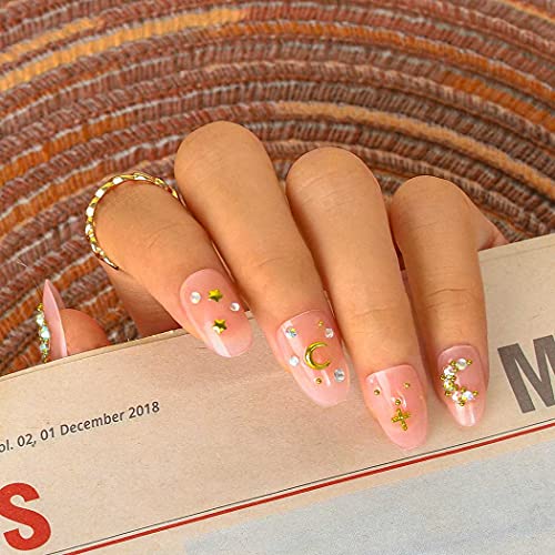Sethexy Ovale Unghie finte Rosa Stella Unghie finte Luna Lucido Attacca le unghie 24 Pz Acrilico Arte Premi sulle punte delle unghie per donne e ragazze