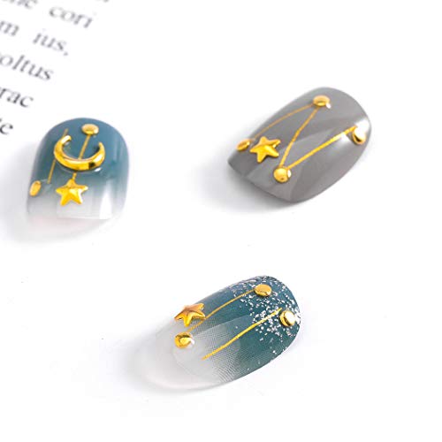 Sethexy 24 pezzi Lucido Squovale Unghie finte Elegante Luna Stella Pendenza Corto Copertura completa Acrilico Unghie finte per donne e ragazze