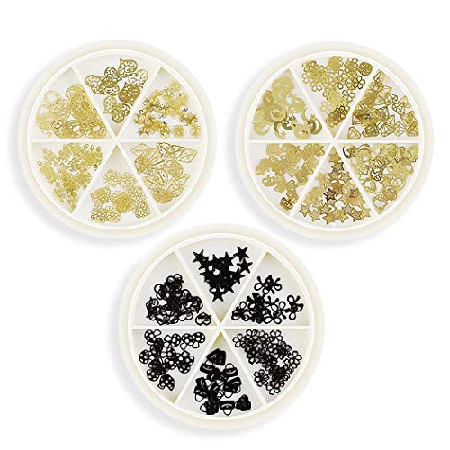 Sethexy 3 scatole Oro Chiodo Borchie 3D Accessori per ciondoli per unghie Metallo Forme miste Fiocco di neve Gemme Gioielli per unghie for Girls Unghie e decorazioni per unghie dei piedi (B)