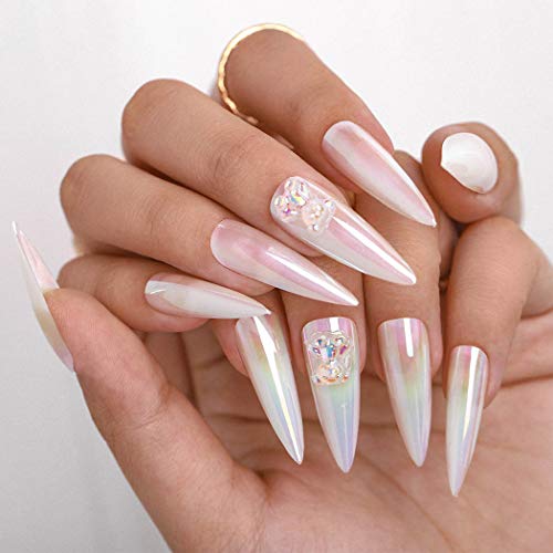 Conveniente:Facile da applicare e tenere con l'adesivo per unghie,facile da tagliare e archiviare in qualsiasi lunghezza e forma che ti piace(Con un mini file e un foglio adesivo per unghie)