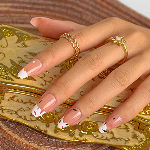 Sethexy Lungo Bara Unghie finte Rosa Unghie finte Ballerina Attacca le unghie Lucido Chiodi con colla 24 Pz Acrilico Arte Punte per unghie a pressione per donne e ragazze