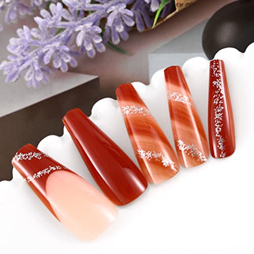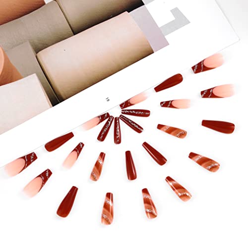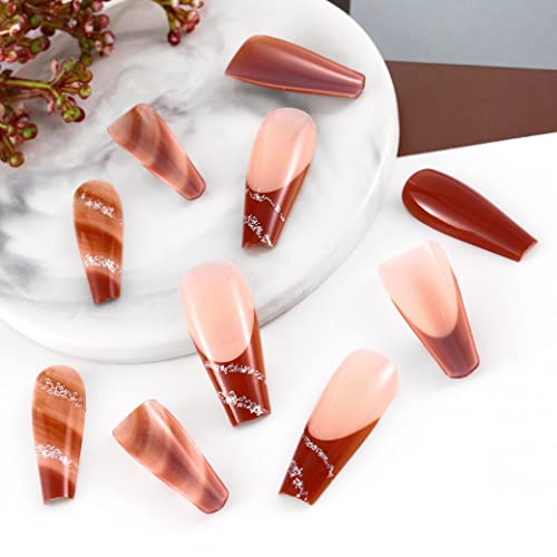 Sethexy Lungo Bara Unghie finte Luccichio Unghie finte Marrone Lucido Premi sulle unghie Ballerina Acrilico Attacca le unghie 24 pezzi per donne e ragazze
