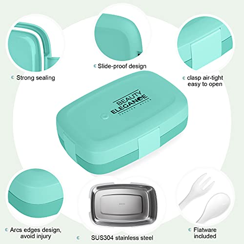 SETORAGELY Bento Lunch Box per Adulti e Bambini,Bento Box Acciaio con Cucchiaio e Forchetta (verde)