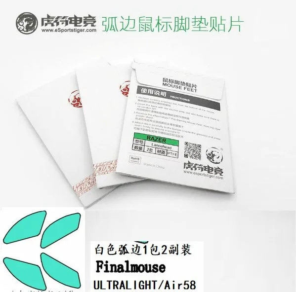 2 sets/pack Tiger Gaming Mouse Skates Feet For Finalmoues ULTRALIGHT Air58 White Mouse Glides Curve Edge