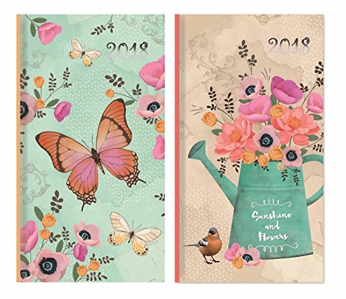 2018 Slim settimana a copertina rigida con vista Diario - floreale verde con farfalla