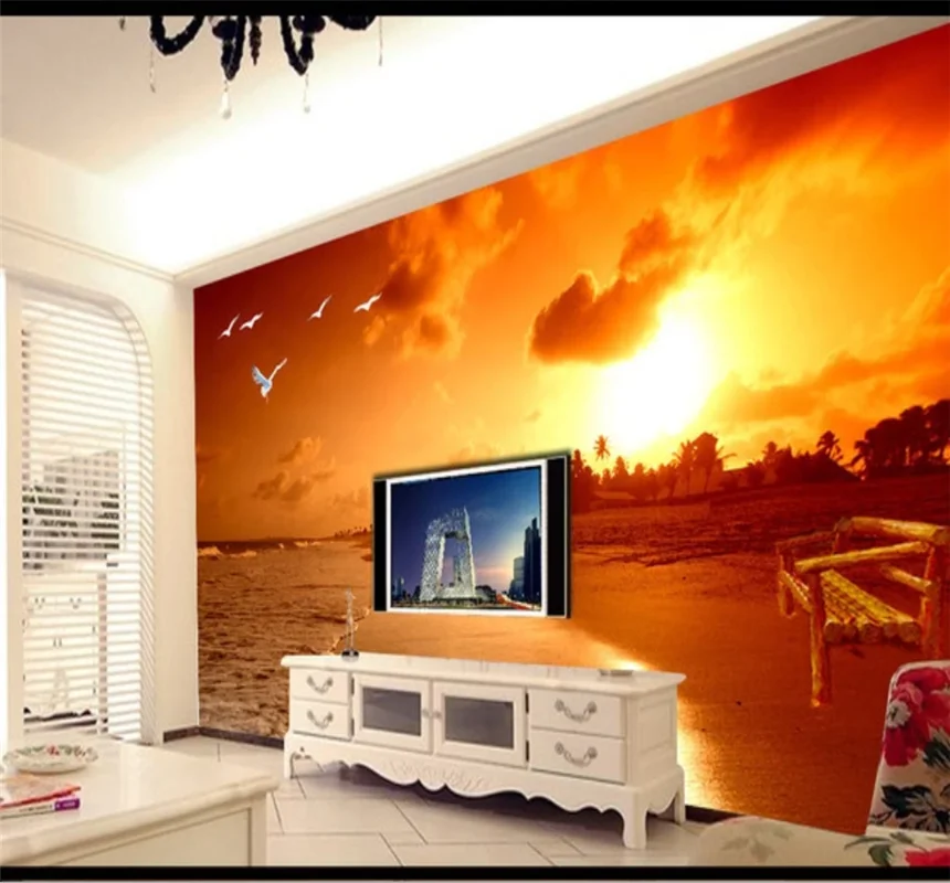 Setting sun beach landscape oil painting living room TV background wall custom wallpaper mural 8D waterproof wall cloth