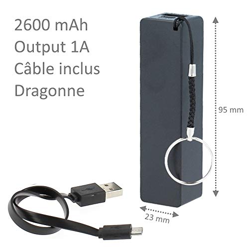 Compatta (95 x 23 x 22 mm) e leggera (66 g), la sua potenza (2600 mAh) vi permetterà di ricaricare 1-2 volte il vostro cellulare.