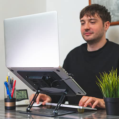 SETUP, Supporto Alza PC Portatile, Pieghevole - Rialzo Computer Da Scrivania - Base Di Raffreddamento - Accessori Notebook Con Ventola USB
