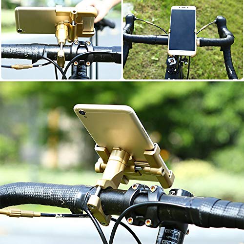 Seully Porta Cellulare per Bicicletta in Lega di Alluminio,Supporto per Telefono Girevole per Bici a 360 Gradi/Telaio di Navigazione Fisso, Supporto Universale per Telefono per Bici (Dorata)