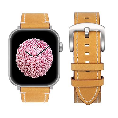 SEURE Compatibile con cinturino Apple Watch 45mm 44mm 42mm, 41mm 40mm 38mm, Uomo Donne Retro Bracciale in pelle di ricambio per la serie SE/8/7/6/5/4/3/2/1(Marrone chiaro,38/40mm)