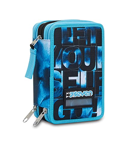 Seven ASTUCCIO Scuola Seven 3 ZIP DIP & SKY Completo di Pennarelli, matite, penne, ecc..
