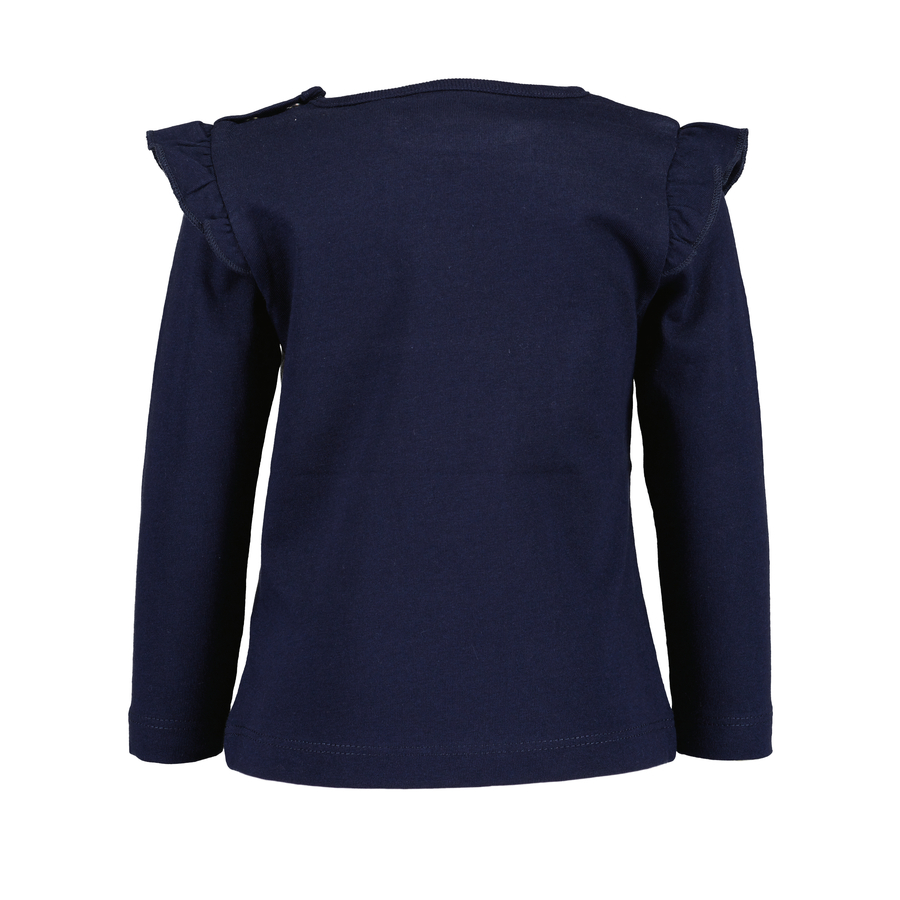 Dettagli del prodotto: Camicia a maniche lunghe con grafica print Collo rotondo Borchie a pressione su una spalla Dettagli con volant sulle spalle Materiale e cura: Materiale: 100 % cotone Lavabile fino a 30°C Asciugare in asciugatrice Non candeggiare Non lavare a secco Ferro caldo