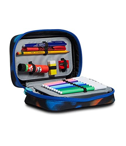 Il nuovo astuccio seven speed case dotato di una comoda apertura tramite un'unica zip e di tutto il materiale necessario per affrontare al meglio la tua giornata di scuola. Lo puoi montare e smontare a tuo piacere. Infatti, all'interno, ha plance con elastici porta penne e matite, che puoi rimuovere del tutto, permettendo in questo modo il lavaggio dell'astuccio. Comodo, pratico e versatile, non ti resta che abbinare il tuo nuovo astuccio speed case a uno zaino o a un trolley seven