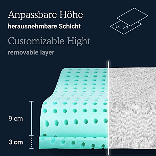 Regolabile in altezza: basta regolare l'altezza del cuscino in base alle tue esigenze (9/12 cm). L'albero cervicale ergonomico garantisce un posizionamento sano del vostro HWS e può prevenire dolori al collo