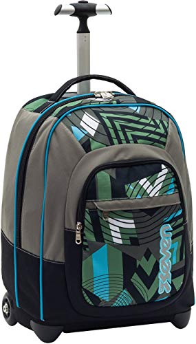 Seven Trolley Fit - Geometric - Grigio Blue - Spallacci a Scomparsa! Zaino 35 LT Scuola e Viaggio