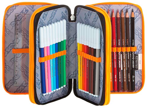 Seven Wildy Boy Astuccio 3 Zip, Blu, con Materiale Scolastico: 18 pennarelli Giotto Turbo Color, 18 matite Giotto Laccato, 20 cm