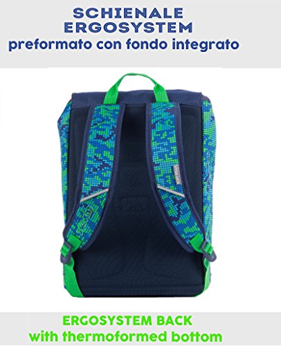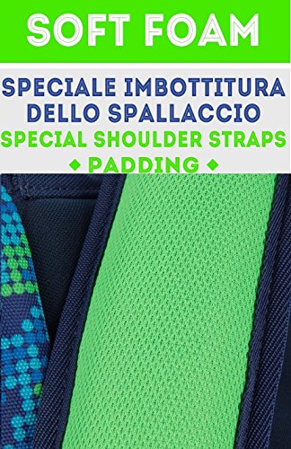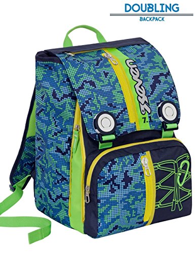 Seven Zaino Scuola sdoppiabile BITMAP - Blu Verde - Estensibile - 28 LT - elementari e Medie Inserti rifrangenti