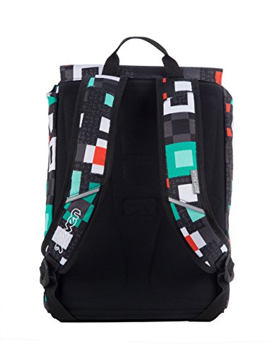 SPALLACCI: Imbottiti e rivestiti in tessuto e rete traspirante con inserto SOFTY FOAM. SCHIENALE: Ergosystem preformato con fondo integrato.