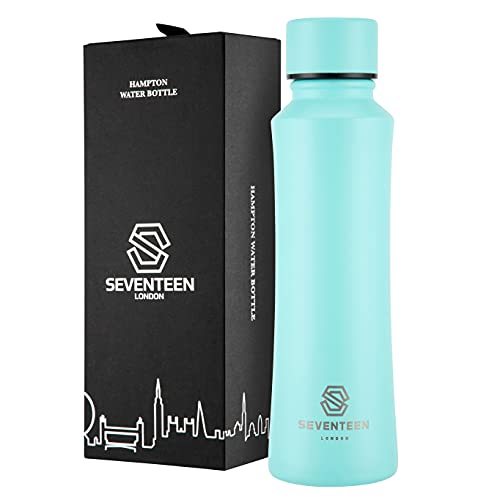 SEVENTEEN LONDON - Bottiglia ‘Hampton' a prova di perdita e riutilizzabile d'acciaio inossidabile in turchese - Borraccia senza BPA - Fresco per 24 ore o caldo per 12 ore - 400ml