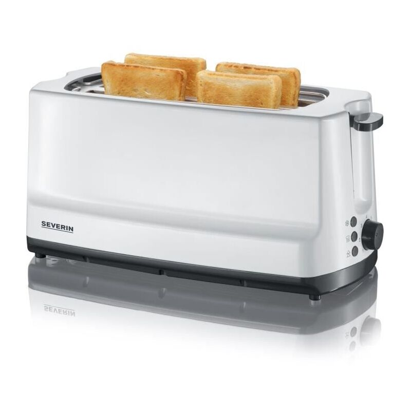 Tostapane - 2 fessure lunghe per 4 fette: tostare, scongelare e riscaldare - 1.400 W - pulsante di espulsione - Funzione di scongelamento con spia luminosa - Supporto per riscaldare i pasticcini - Centratura automatica per una colorazione uniforme delle fette