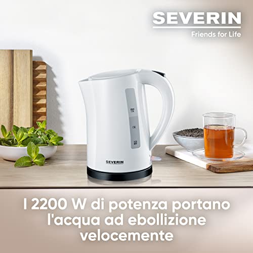SEVERIN WK 3494 Bollitore per acqua 2200W in plastica e metallo, Teiera elettrica con capacità da 1,5 litri, Bollitore acqua elettrico con indicatore del livello dell'acqua, Bianco