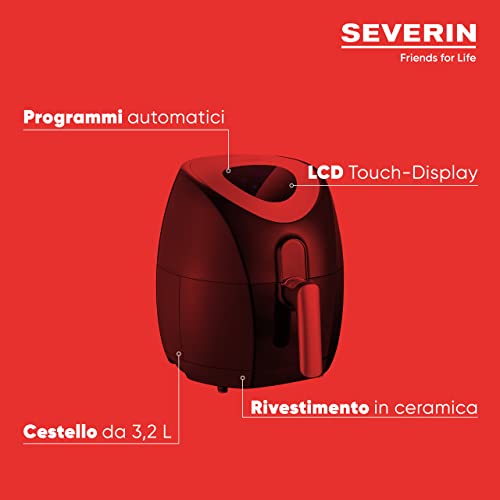 SEVERIN FR 2430 Friggitrice ad aria calda 1500W, Friggitrice ad aria Cestello da 3.2 L, 6 programmi automatici senza olio, Friggitrice ad aria elettrica con display touch LCD, Nero