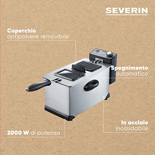 SEVERIN FR 2431 Friggitrice elettrica 2000W in acciaio inossidabile, Friggitrice per patate, carne, pesce e ortaggi facile da pulire, Friggitrice da 3L e capienza di frittura 400gr