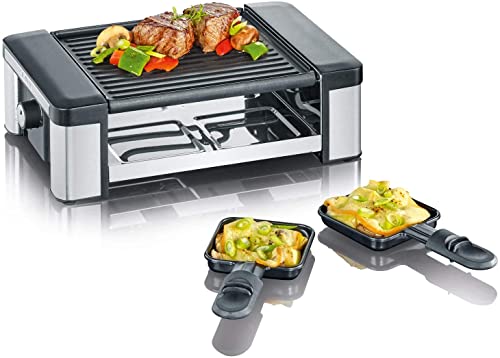 Severin RG2674, Grill Raclette compatto, Griglia antiaderente, 4 pentolini antiaderenti, 4 raschietti in legno, Potenza 600 watt