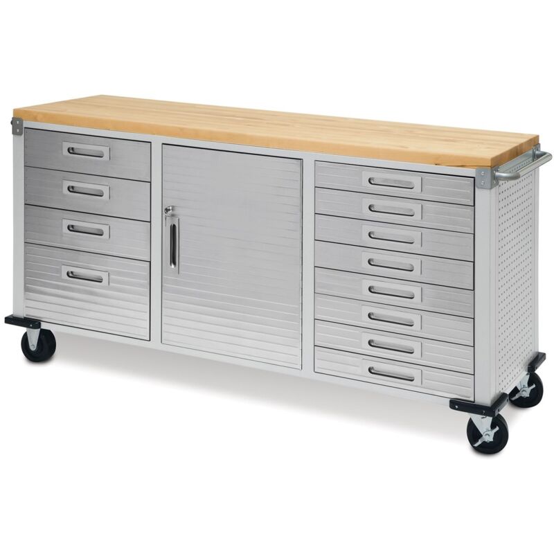 Con il nostro banco da lavoro Seville Classics UltraHD organizzate perfettamente i vostri attrezzi e li conservate con cura. Con un comodo sistema di chiusura (chiave di scorta contenuta nella confezione) questo carrello da lavoro vi offre un ottimo sistema di immagazzinaggio per attrezzi e materiale da lavoro. Il ripiano vi offre ulteriore praticità. Le 4 ruote orientabili professionali (2 con blocco) con diametro 12.7 cm vi offre mobilità o. un appoggio sicuro. Fornito di 3.8 cm piano di lavoro in legno di faggio massiccio (182.9 x 50.8 cm) potete disporre comodamente ed efficacemente i vostri attrezzi.Porte e cassett sono in acciaio inossidabile e corpo in metallo con verniciatura a polvere.Il banco da lavoro Seville viene consegnato smontato e si monta in modo semplice e rapido.. Utile e versatile in officina, garage, cantina-laboratorio o a livello professionale in magazzino o nella suddivisione della posta.