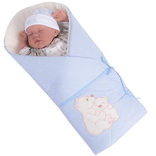 Sevira Kids - Sacco nanna/da passeggio multiuso 100% cotone, misura nascita, modello blu con orsi