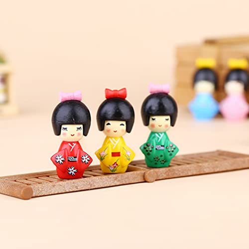 SEWACC Bambola Giapponese Kokeshi 6Pcs 4X2cm Statue di Figurine delle Bambole Tradizionali Giapponesi Kimono Dolls Decoration Micro- Paesaggio Artigianato per Decorazioni per La Casa