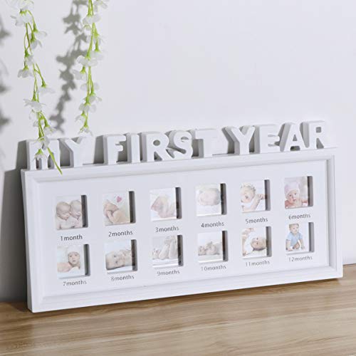 SEWACC Baby Keepsake Frame My First Year Photo Moments Stile Unico Baby First Year Photo Memories 12 Mesi Immagine Cornici 41X20cm per La Casa Genitori (Bianco)