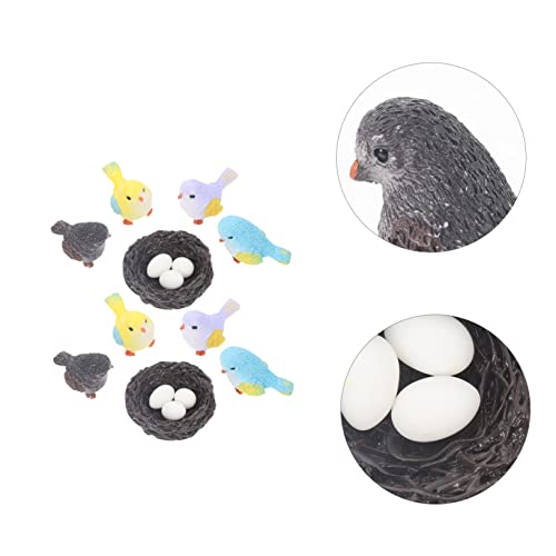 SEWACC 2 Set Micro Paesaggio Uccello Nido Di Uccelli Con Uova Uccelli in Miniatura Della Casa Delle Bambole Mini Statuina Di Uccelli Nido Di Uccelli Di Pasqua Animale Artificiale Resina