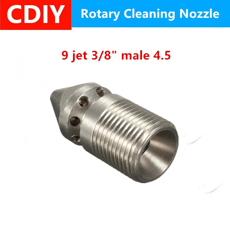 Sewer Cleaning Jetter Nozzle 9 Jet 3/8" Male 4.5 Rotary Pressure Washer Drain Cleaning Nozzle Stainless Steel 303