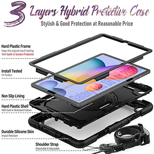 SEYMAC Cover per Samsung Galaxy Tab S6 Lite 10,4 Pollici 2022/2020, Resistente Agli Urti, Impugnatura Girevole a 360°, Supporto, Tracolla e Protezione Schermo, Cover Galaxy Tab S6 Lite 2022, Nera