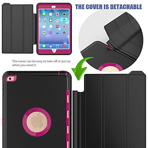 Seymac, custodia per iPad Mini 4, iPad Mini 5, a 3 strati, resistente, antiurto, robusta, con supporto pieghevole e funzione di accensione e spegnimento automatici, per iPad Mini 4a, 5a generazione nero/rosa. iPad Mini 4/5 Case