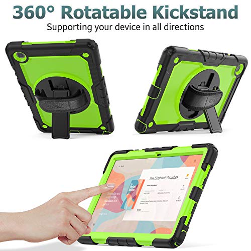 SEYMAC stock Custodia per Samsung Galaxy Tab A7 10.4'' con Proteggi Schermo [Cinghia da Mano Girevole a 360°] e Supporto, Custodia a Prova di Goccia per Samsung Galaxy Tab A7 SM-T500/T505 (Verde)