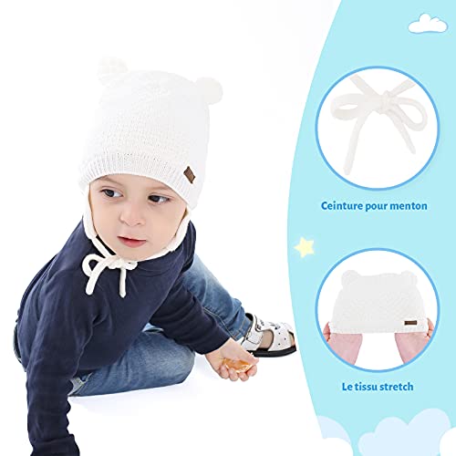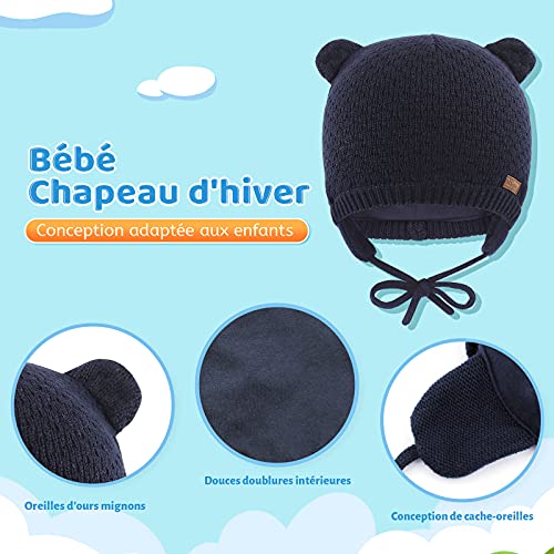 SEYUFN Cappelli invernali per bebè, per bambine, bambine in prima infanzia, Cappelli a maglia calde per bambini, cappello foderato in pile con copriorecchie da 0 a 36 mesi, Blu marino, 0-6 Mesi