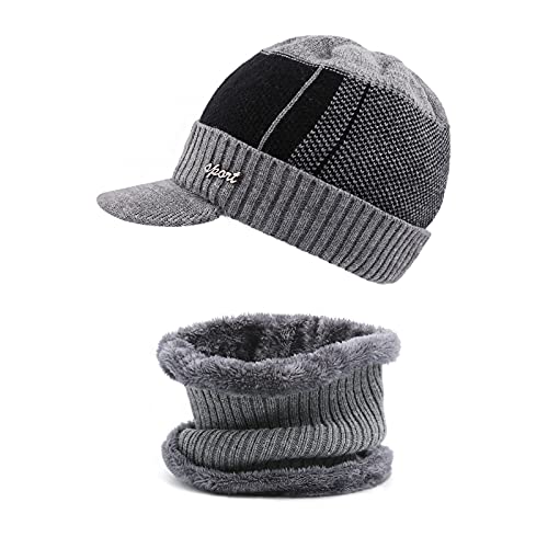 SEYUFN Cappellini da uomo invernali, maglia a maglia, in pile, elasticizzati, per sci, neve, per ragazzo, sciarpe, caldo al collo per attività in spiaggia, Grigio in due parti, Taglia Unica